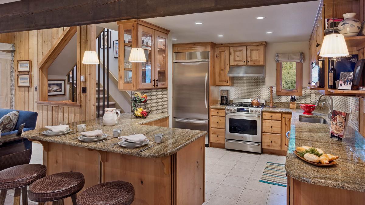 This home is located right on the Right-O-Way ski trail (beginner), and provides easy access on/off the mountain. When you aren't enjoying slope activities, enjoy the picturesque trail views. Right-O-Way's open living plan features a wood-burning fireplace with cozy sitting areas around a large flat screen making it easy to unwind and relax. The newly remodeled kitchen has been styled with high end stainless appliances and granite counters. Any chef could be inspired by the views and find this location an easy place to create perfection. The kitchen opens to the dining area with seating for eight. The dining area offers wonderful views of both the mountain and fireplace.