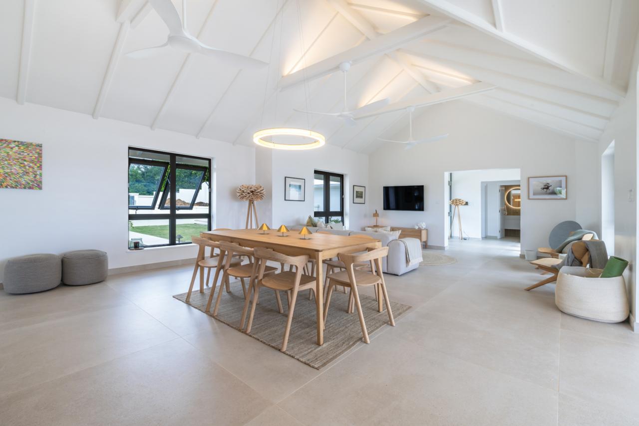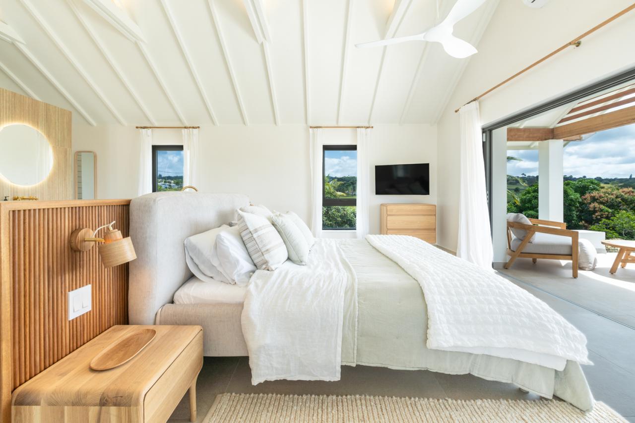 Flowing effortlessly from the outdoor oasis, the villa’s open-plan living area and modern kitchen blend sophistication with natural beauty. The kitchen is designed for both function and social connection, featuring a breakfast bar and a spacious dining area perfect for shared meals and gatherings. Meanwhile, the guest cottage serves as a private sanctuary, complete with its own living area and compact kitchen, offering added independence and comfort for visitors. Every element of Cloudbreak Villa has been carefully curated to deliver a seamless balance of tranquility, elegance, and modern convenience. With its serene setting, luxurious amenities, and breathtaking surroundings, Cloudbreak provides an exceptional escape where guests can relax, recharge, and create lasting memories in a truly idyllic environment.