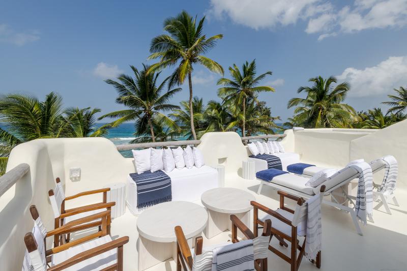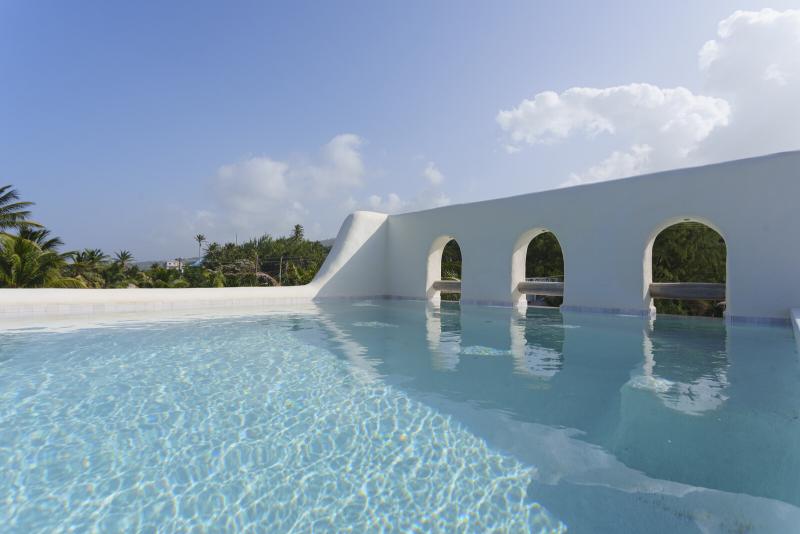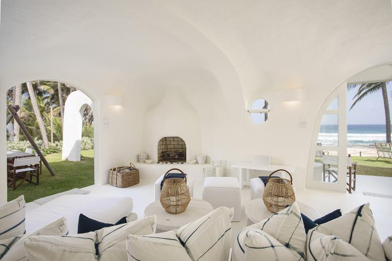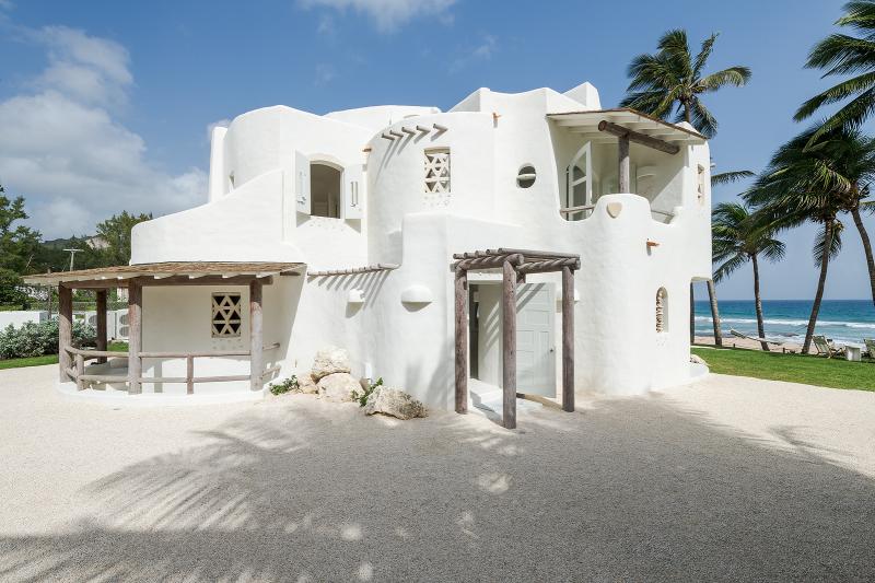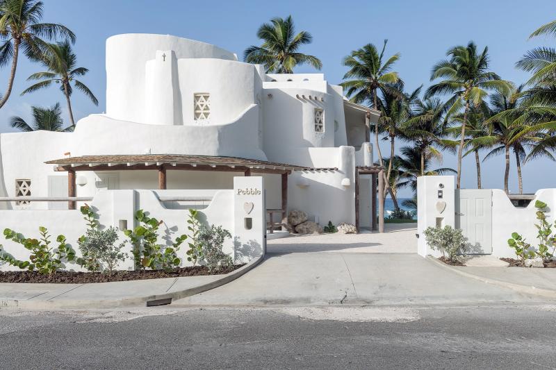 Pebble is located on the secluded East Coast, designed by Sophie Domenge and inspired by French architect Jacques Couëlle. This Barbados villa blends seamlessly with the rugged, windswept landscape, providing a unique sanctuary where guests can reconnect with nature and immerse themselves in the sounds of the Atlantic Ocean. With its sculptural design, curved ceilings, and roughly textured white walls, Pebble offers an authentic and harmonious living experience that flows naturally with the sun's path throughout the day—from morning yoga in the spiritual room to moonlit relaxation on the roof deck.