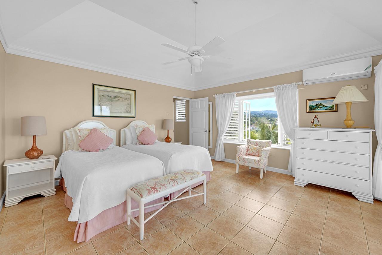 Bedroom 3: King bed (can be converted to two twin beds), terrace, ocean and pool view, large bay window, en suite bathroom with double vanity, tub and shower, adjoining passageway with bedroom 2