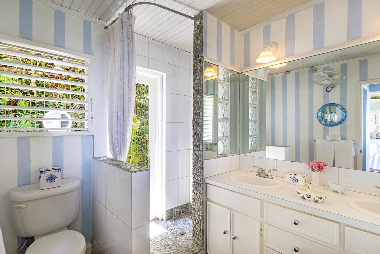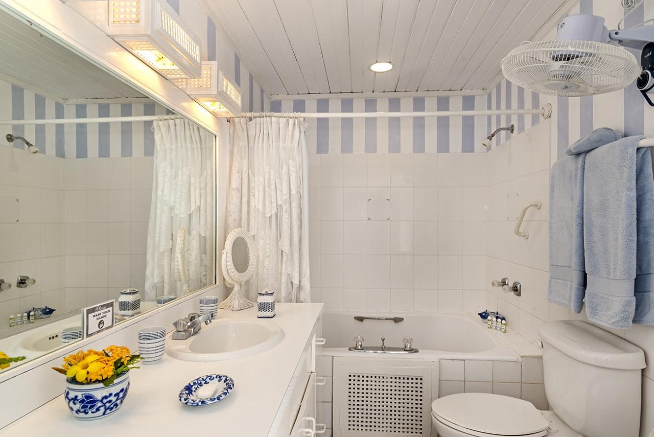 In Caribbean-style architecture, spaces are defined by airy octagonal gazebos and high cedar ceilings. Pretty blue and white fabrics and cool marble floors are throughout. Each bedroom opens to a sitting area for private afternoon naps or all-day gazing at the changing light on the Caribbean Sea ~ practically at your doorstep.