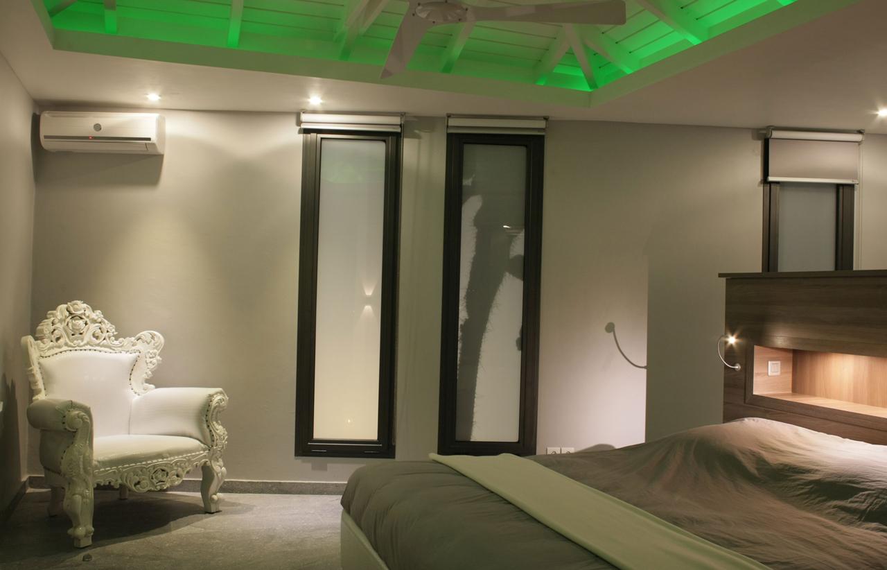 Comprising a living, dining and kitchen area that open out on to the covered terrace offering further dining for up to 6 guests. Both interior access, air conditioned bedrooms have a king-size bed and a complete en suite bathroom. The Master bedroom also features a private garden area with sun lounger. The long lap pool with wide entrance steps and river rock finish runs almost the length of the villa. The villa is fabulously fiber optic lit at night, and is a fine example of a compact architectural masterpiece.