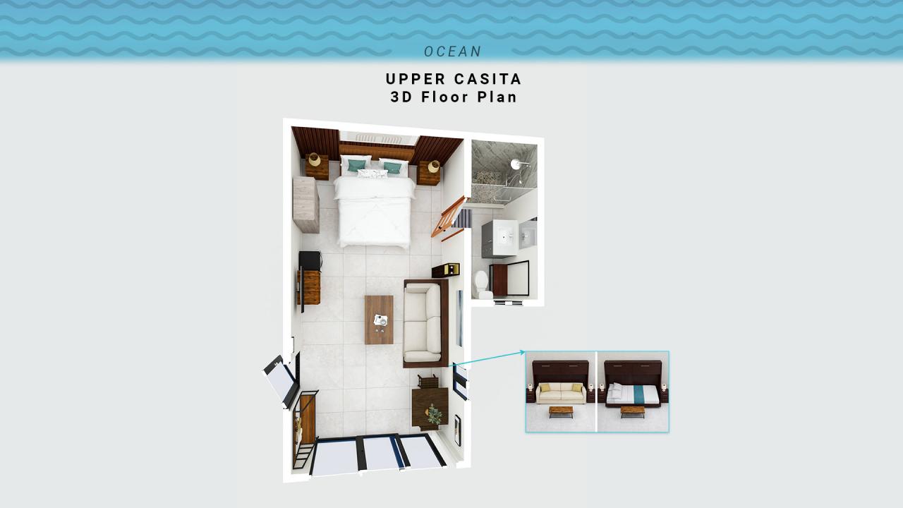 •      Upper Casita: King bed + Queen Murphy/Wall bed (a full second bed with a luxury foam mattress), private ensuite + partial ocean view