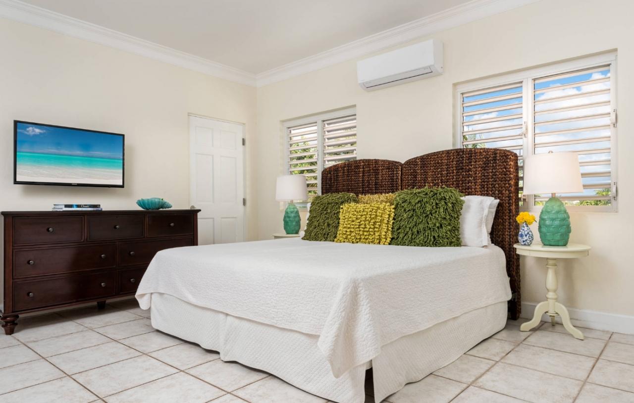 Bedroom 2: Two twin beds (can be converted into a king), en suite bathroom, AC, ceiling fan, TV, DVD player