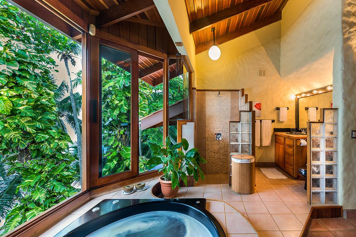 - Bedroom 4: King bed, en suite bathroom with jacuzzi tub and shower, AC, ceiling fan, safe, phone, satellite TV, balcony, ocean view, located on the second floor