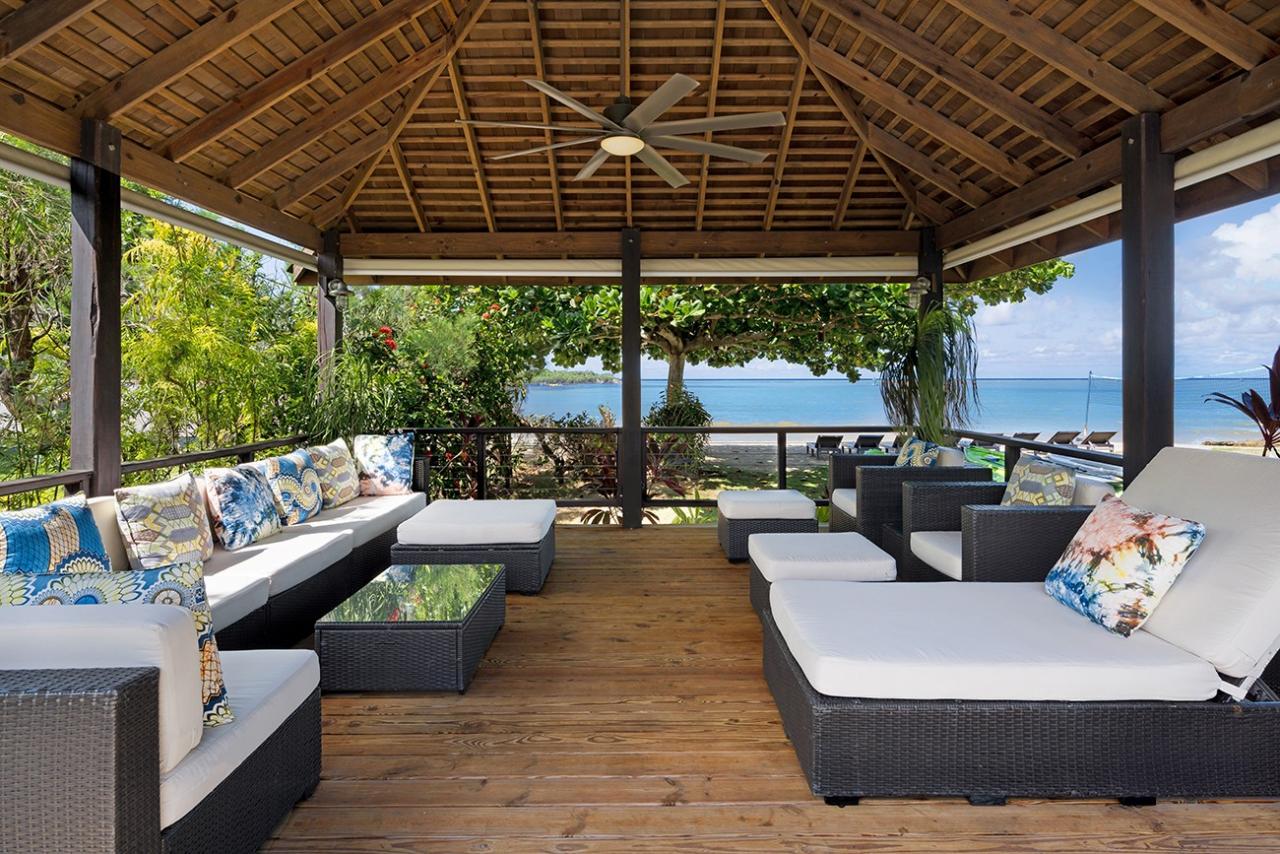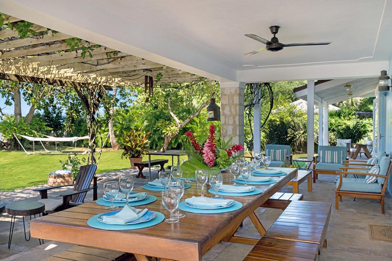 Sleepy Shallows is a beautiful villa in Jamaica. This Jamaica vacation rental sits on a grassy lawn that stretches down to the white sandy beach and the waters of Bengal Bay. Sleepy Shallows gives guests a place to embrace outdoor living with multiple places to sit and relax, read a book, or enjoy with friends and family. On the ground level, there is one bedroom, and there are four more bedrooms and a game room equipped with a TV and a pool table. There is plenty of seating and dining areas along with a gazebo near the pool with sofas and a hammock to enjoy the beachfront. Enjoy the white sand beach of Sleepy Shallows.