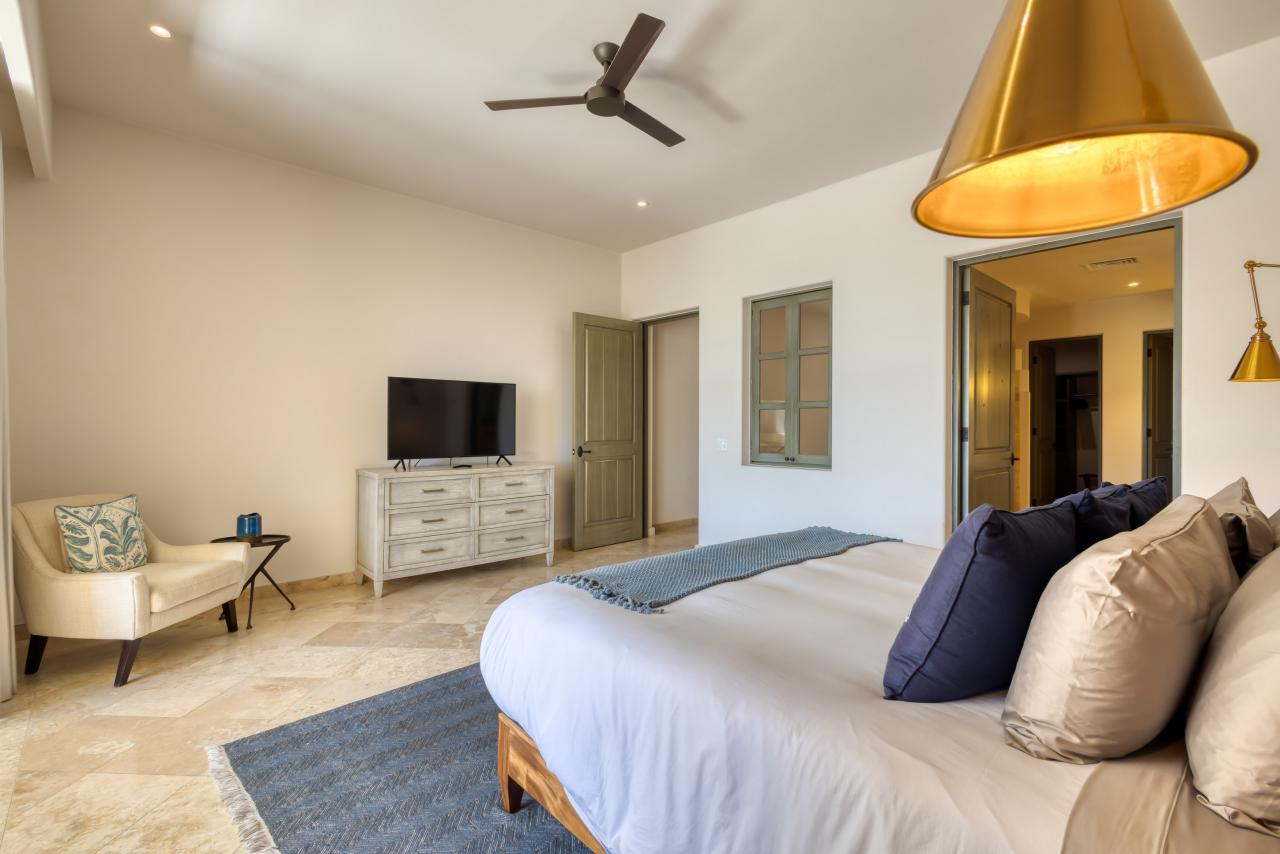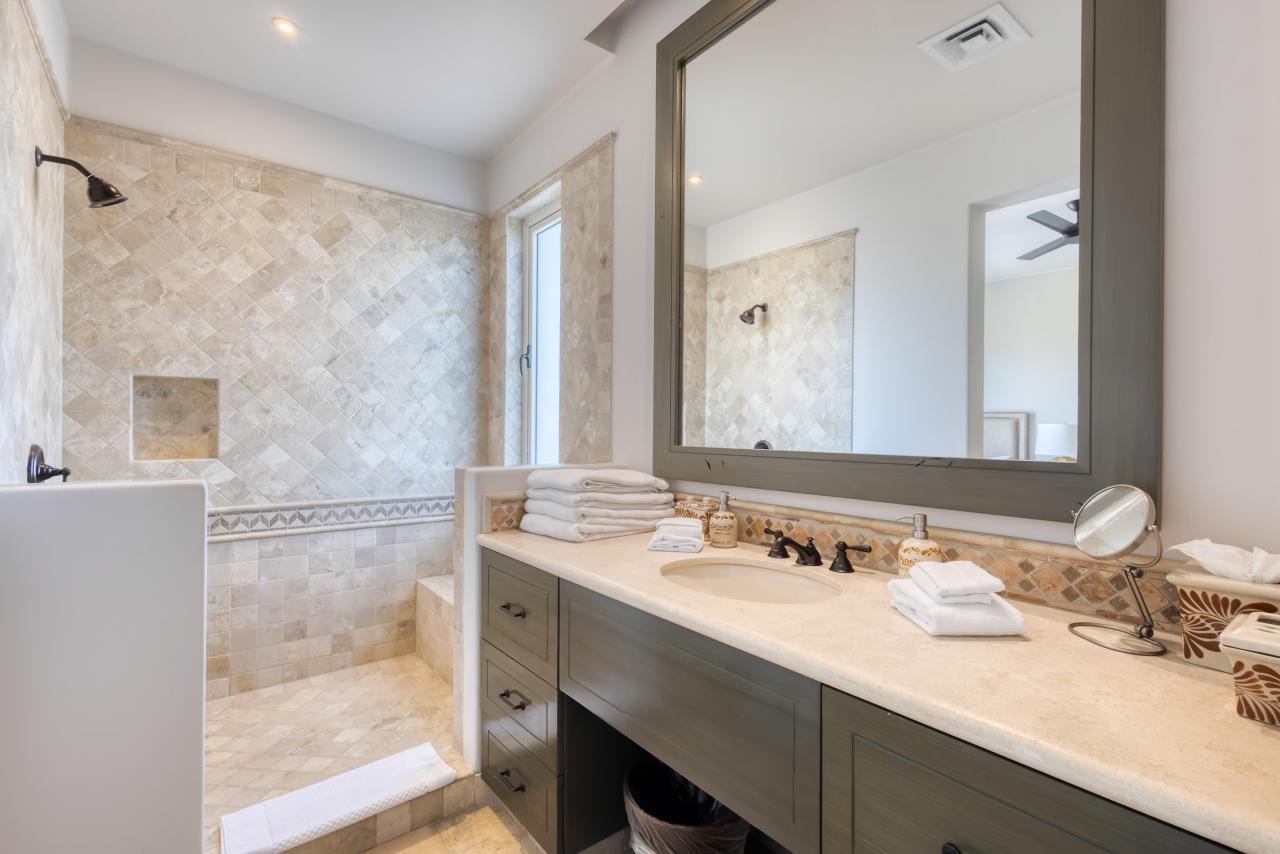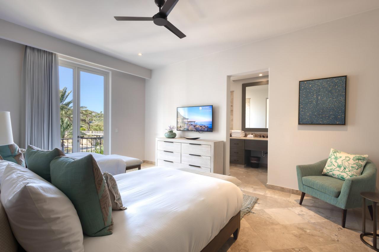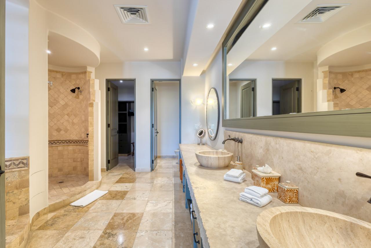 Each bedroom in this Los Cabos villa is thoughtfully appointed to provide a tranquil retreat, featuring premium linens, refined décor, and abundant natural light. The layout includes two bedrooms with King beds and one bedroom with two Double beds, offering flexibility and comfort for various group arrangements. All bedrooms feature private ensuite bathrooms, ensuring privacy and convenience for every guest throughout their stay.