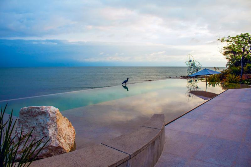 Casa Valhalla is a stunning six-bedroom, fully staffed oceanfront villa perched on the cliffs of Punta Mita, designed by acclaimed Mexican architect Tatiana Bilbao. As the only rental property of hers available to guests, this five-level retreat offers panoramic views of Banderas Bay and blends seamlessly into its natural surroundings with lush gardens and native vegetation.