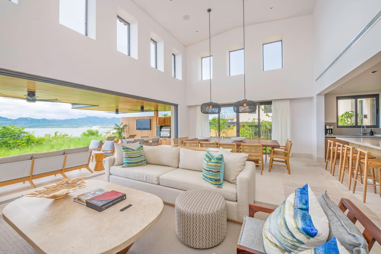 Expansive retracting doors and vaulted ceilings bring the outside in, where an open-living floor plan awaits. A fully equipped gourmet kitchen provides for family or group meals where memories of your Punta Mita vacation will be made. Love outdoor cooking while taking in beautiful ocean views and sunsets instead? The outdoor kitchen with alfresco dining provides an alternative option. As your day whines down, relax in one of the four bedrooms, each offering comforable bedding, TVs, and ensuite bathrooms.