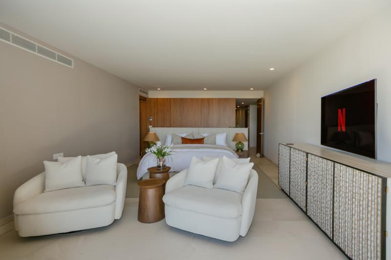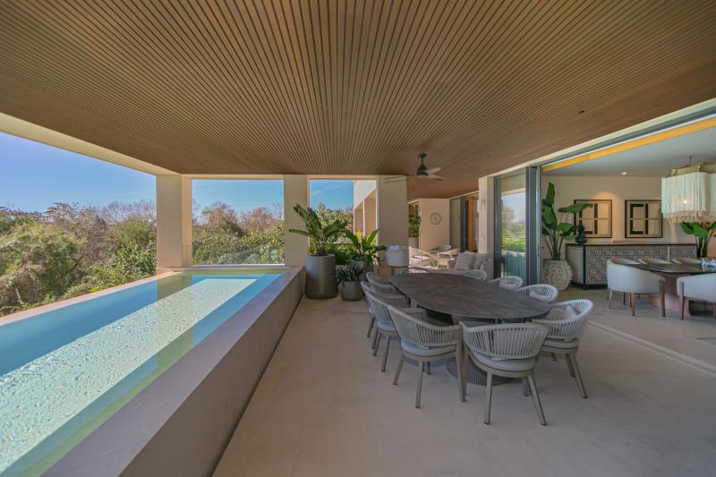 Conde de Ondas boasts open-concept living spaces that ooze sophistication. Floor-to-ceiling windows flood the interiors with natural light and offer breathtaking panoramic views of the lush surroundings, creating a seamless indoor-outdoor living experience. ach of the four bedrooms is designed to deliver ultimate comfort and privacy. Featuring plush linens, spacious closets, and sleek, contemporary decor, these rooms are perfect sanctuaries for rest and relaxation. The master suite is particularly exquisite, opening onto a private terrace where you can unwind with gentle ocean breezes and serene, picturesque views—a perfect spot for morning coffee or evening sunsets. Every detail, right from the high-end finishes to state-of-the-art amenities, is meticulously curated to provide a luxurious Punta Mita vacation retreat.