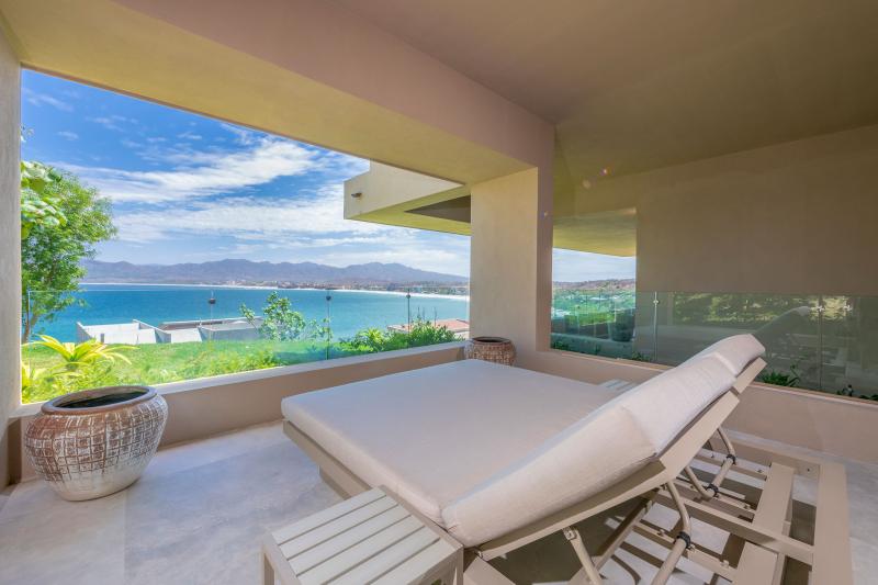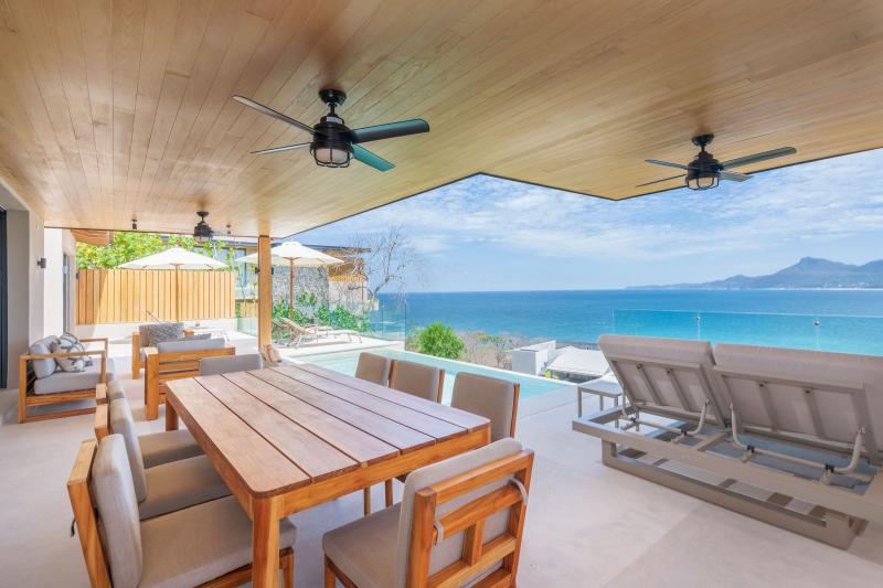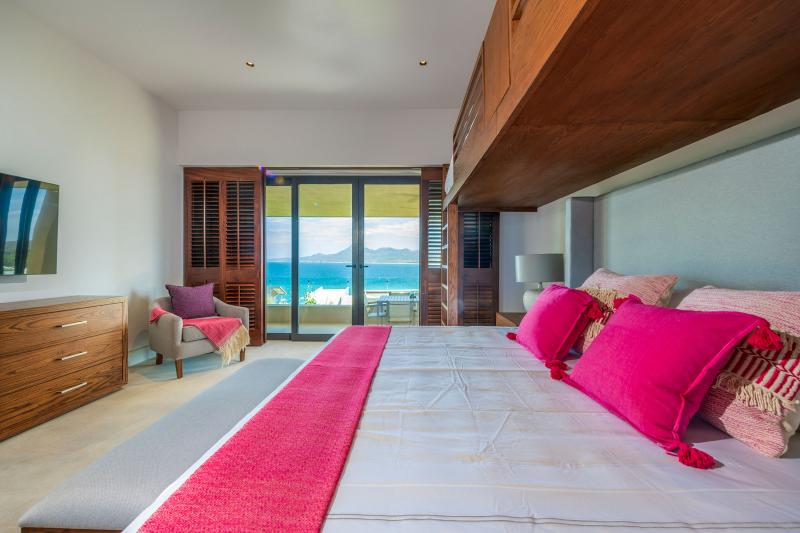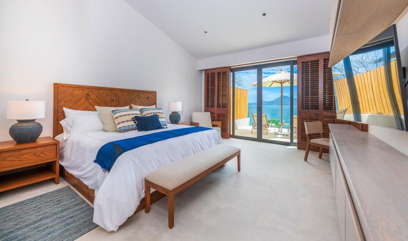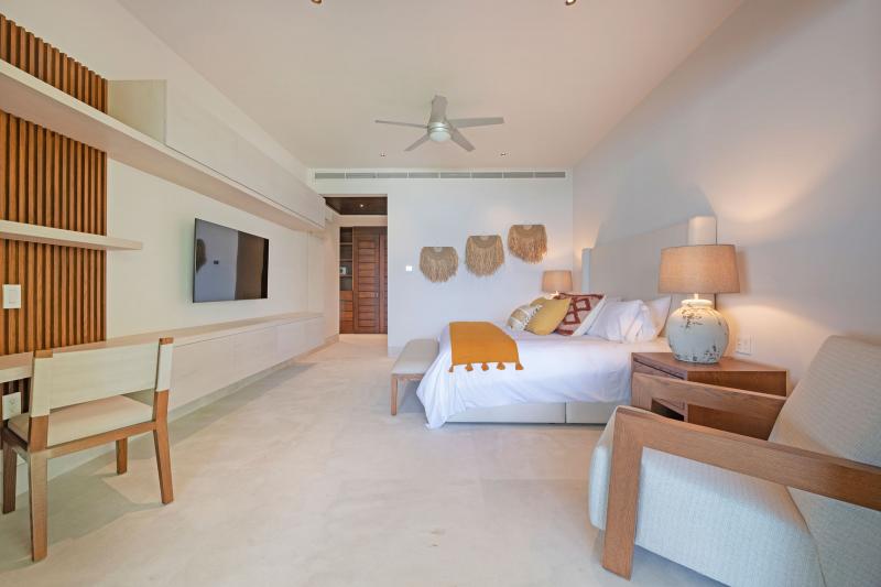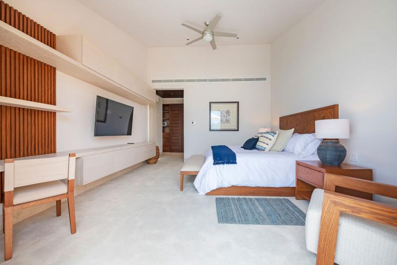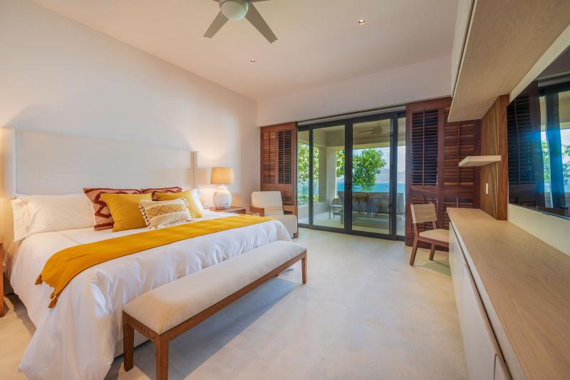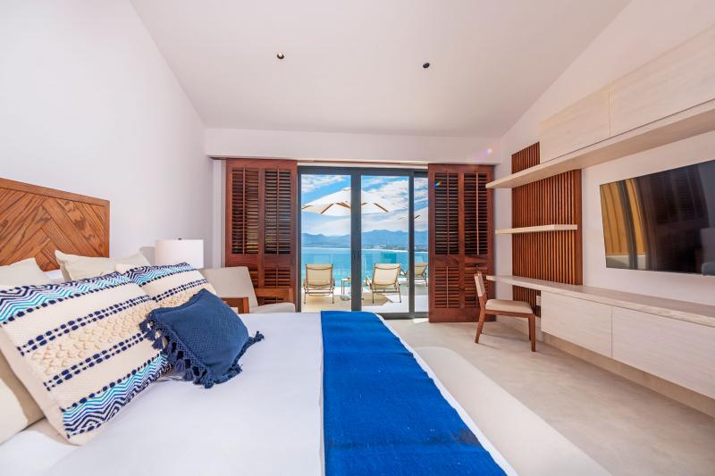 Primary Bedroom: This room is equipped with a king-sized bed, a TV, a terrace, an ocean view, and an ensuite bathroom.