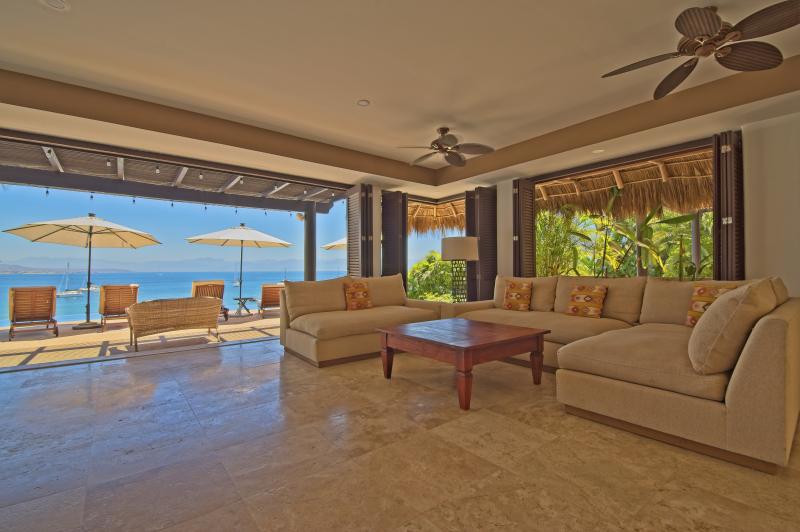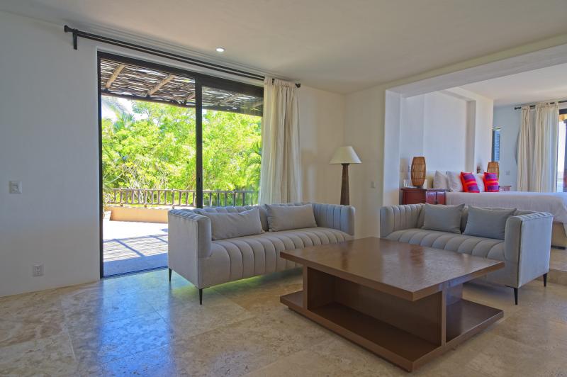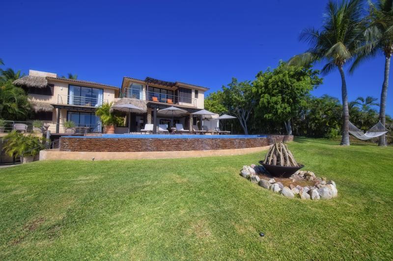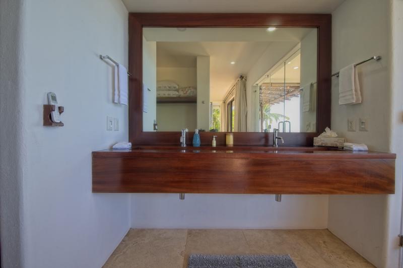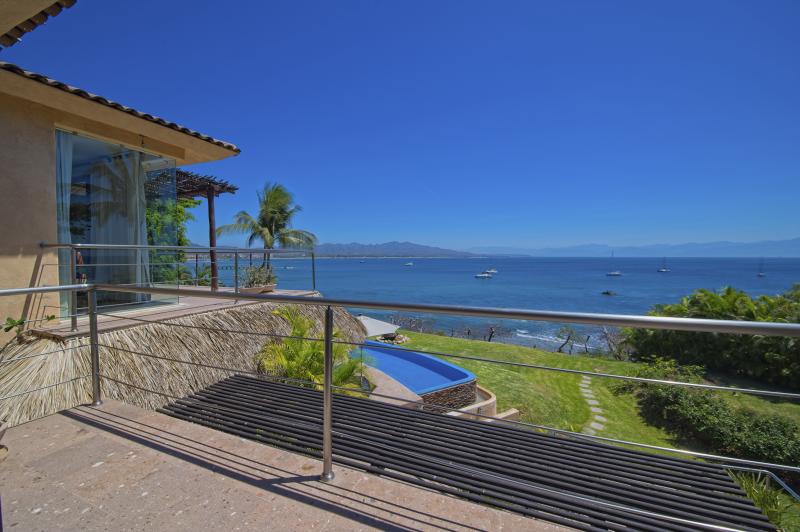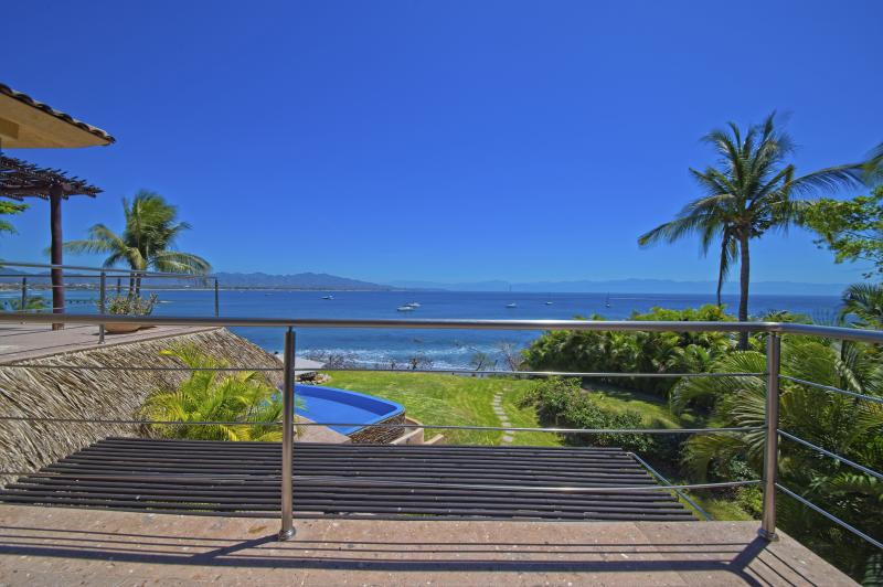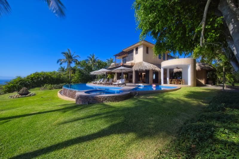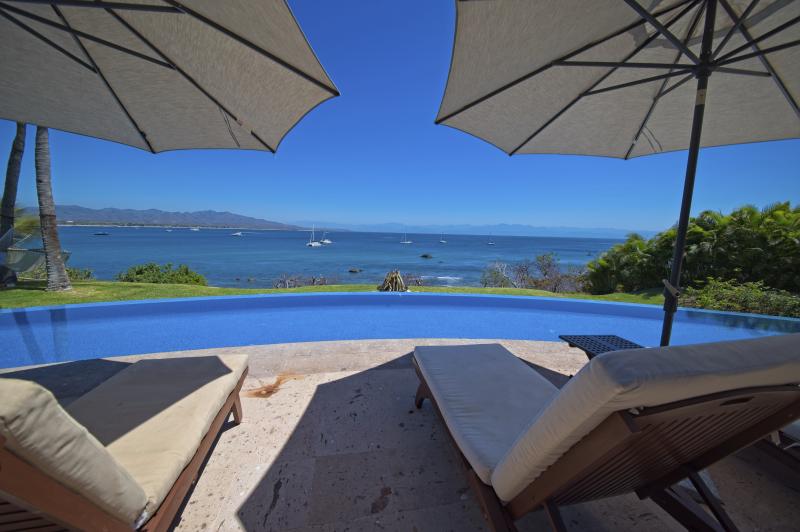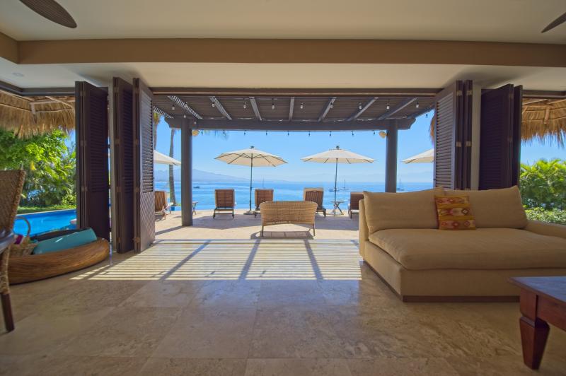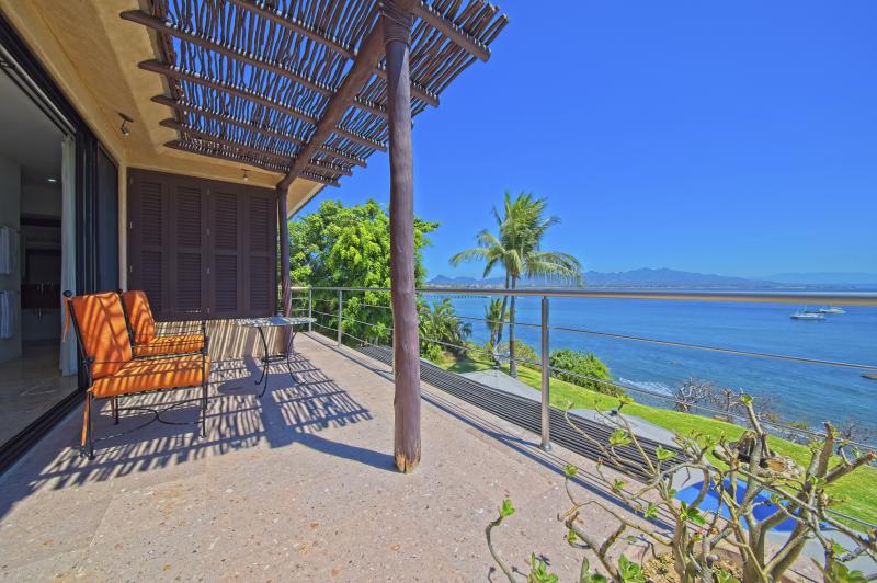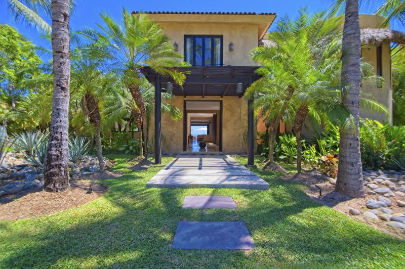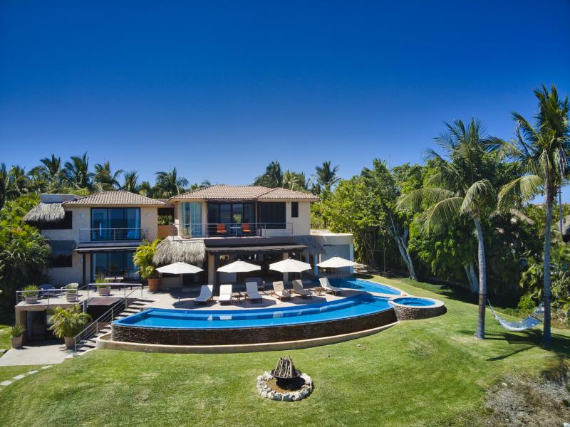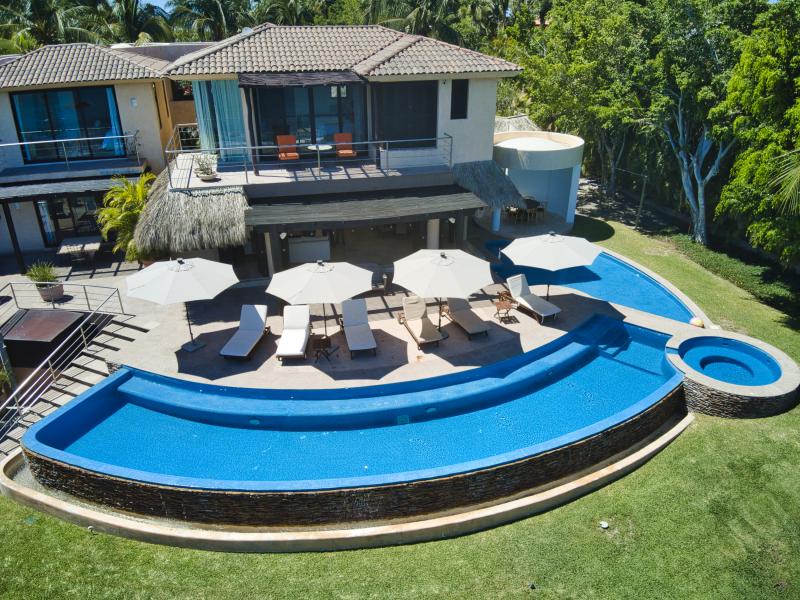 Villa Lunada is 5,500 square feet of gorgeous living space. Located in La Punta Estates in the Punta Mita resort, less than one mile from the St. Regis Punta Mita Hotel, this Punta Mita rental is the perfect spot for your next holiday. The main villa has 3 bedrooms and a bonus room that can be used as a king suite, media room or just a place to relax and hang out. This property is a surfer's dream. Decor in this villa resemble the beautiful colors you'll see in the Mexican sunset. The views are simply amazing and are maximized with the open living room that leads out to the pool deck. Outdoors you'll find an infinity pool with Jacuzzi overlooking the beach, a fire pit, a beach volleyball court and an onsite organic garden. The "farm to table" cuisine couldn't get any fresher. And with the state of the art kitchen, it'll be a breeze. Villa Lunada is within walking distance of two other surf spots. The sweeping views from any and every part of the Punta Mita villa include the peninsula, the Jack Nicklaus golf course and the brilliant waters of the Pacific. A stay at Villa Lunada includes use of the SUP (Stand Up Paddle) facilities and lessons at nearby Hotel Cinco, use of the Four Seasons golf course (green fees are extra) and guests can request staff and a chef, as needed. We also offer the opportunity to practice early morning yoga on the terrace.