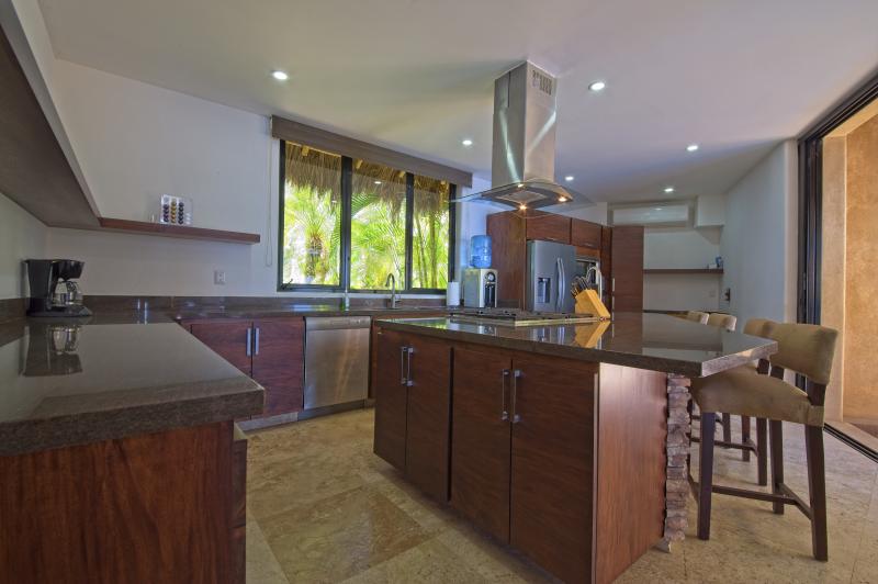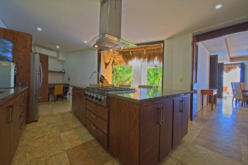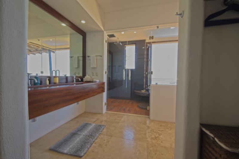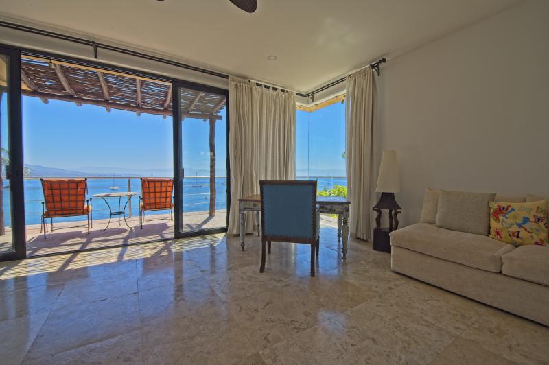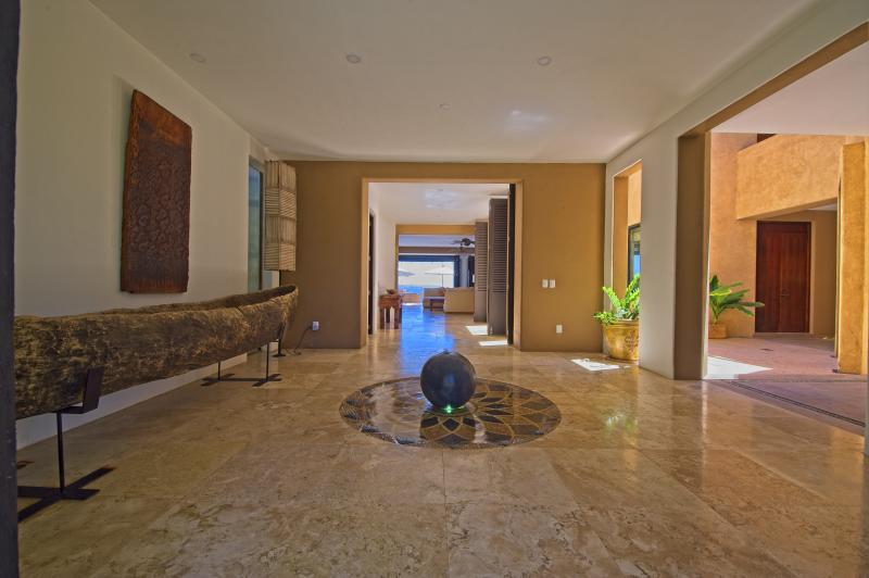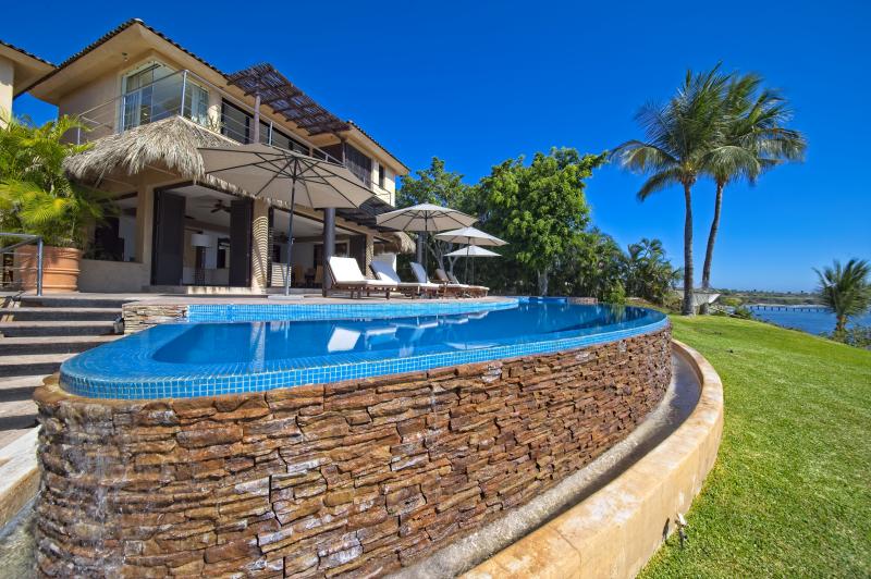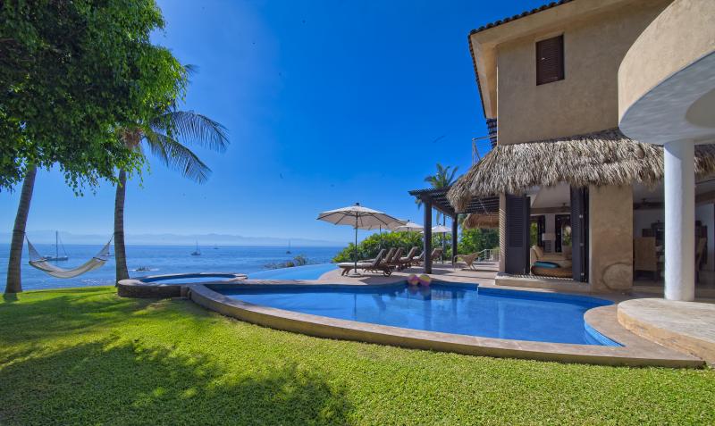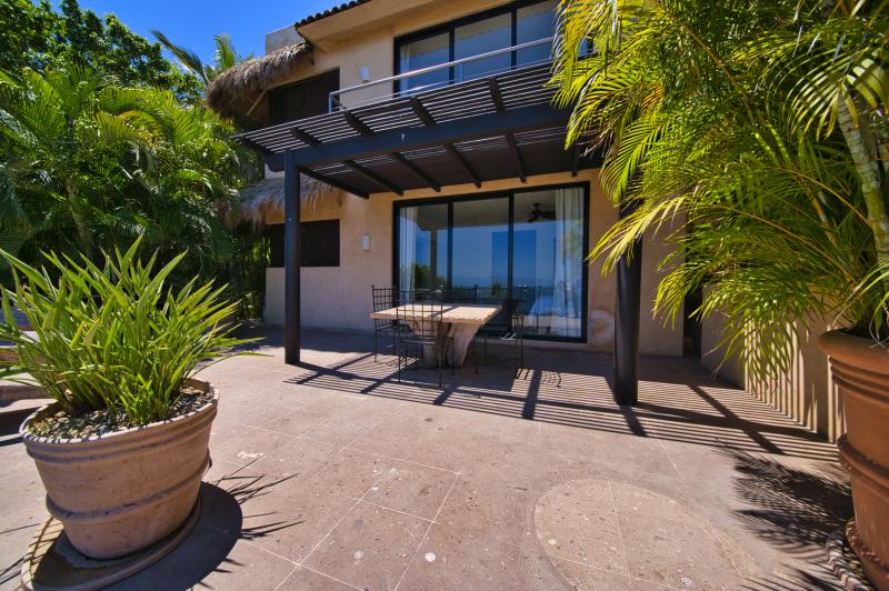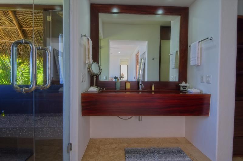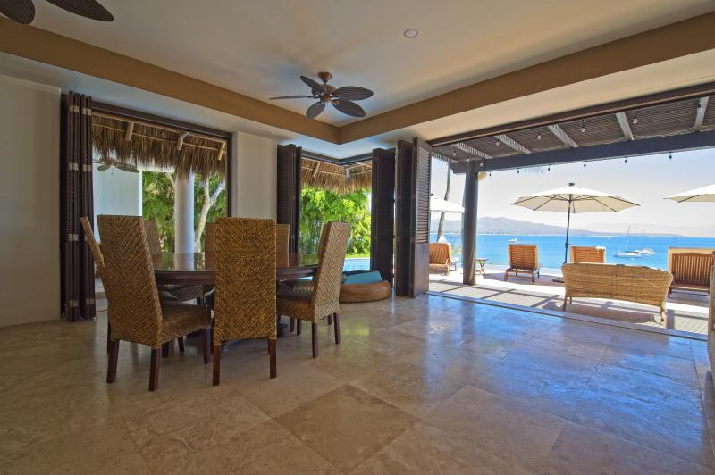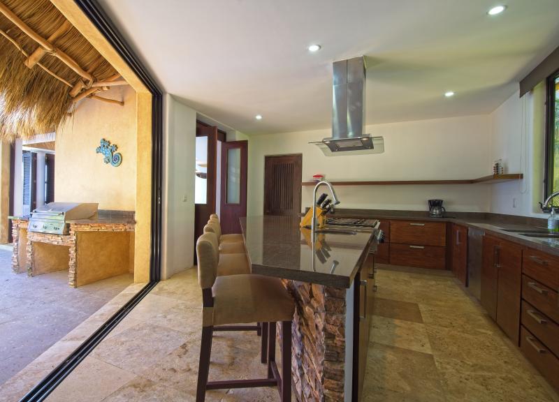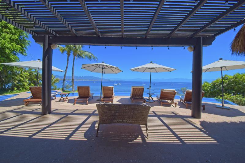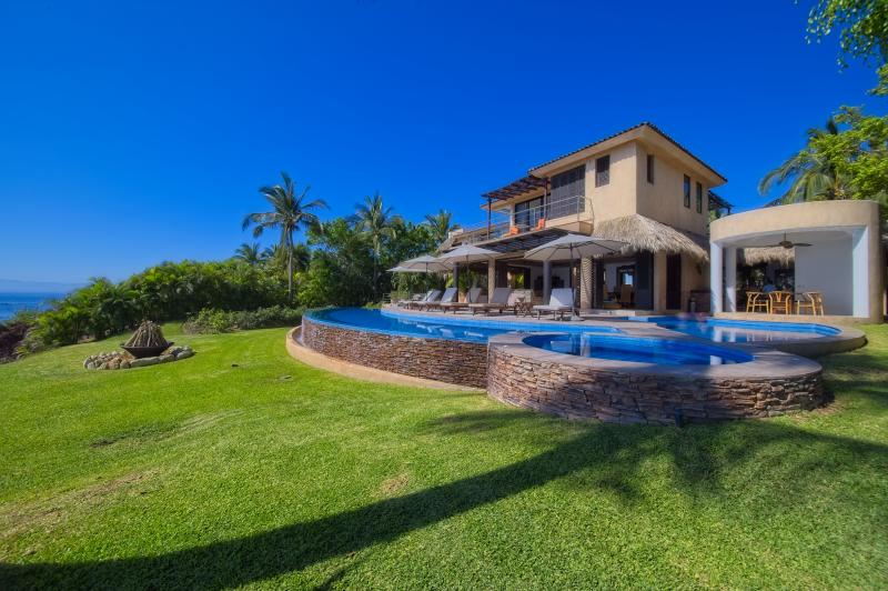 Villa Lunada is 5,500 square feet of gorgeous living space. Located in La Punta Estates in the Punta Mita resort, less than one mile from the St. Regis Punta Mita Hotel, this Punta Mita rental is the perfect spot for your next holiday. The main villa has 3 bedrooms and a bonus room that can be used as a king suite, media room or just a place to relax and hang out. This property is a surfer's dream. Decor in this villa resemble the beautiful colors you'll see in the Mexican sunset. The views are simply amazing and are maximized with the open living room that leads out to the pool deck. Outdoors you'll find an infinity pool with Jacuzzi overlooking the beach, a fire pit, a beach volleyball court and an onsite organic garden. The "farm to table" cuisine couldn't get any fresher. And with the state of the art kitchen, it'll be a breeze. Villa Lunada is within walking distance of two other surf spots. The sweeping views from any and every part of the Punta Mita villa include the peninsula, the Jack Nicklaus golf course and the brilliant waters of the Pacific. A stay at Villa Lunada includes use of the SUP (Stand Up Paddle) facilities and lessons at nearby Hotel Cinco, use of the Four Seasons golf course (green fees are extra) and guests can request staff and a chef, as needed. We also offer the opportunity to practice early morning yoga on the terrace.