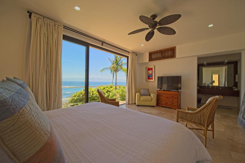 • Bedroom 3: King bed, en suite bathroom, AC, ceiling fan, satellite TV, wifi, ocean view, private terrace