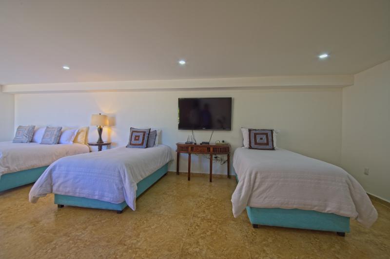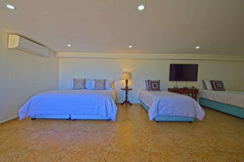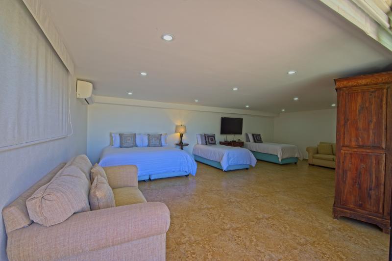 • Bedroom 4: King bed, 2 twin beds, 2 bunk beds, en suite bathroom, AC, ceiling fan, satellite TV, wifi, garden view, private terrace