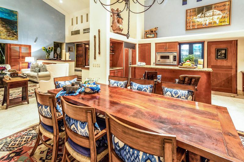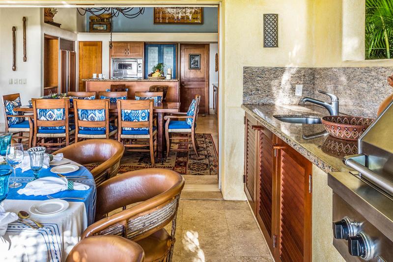 The exterior dining area has a Viking grill and rotisserie, wet bar, ice maker and exterior “beer” fridge. Lush tropical foliage, private pool, super private grassed area all make this Punta Mita villa a perfect vacation venue for anybody with discerning tastes.