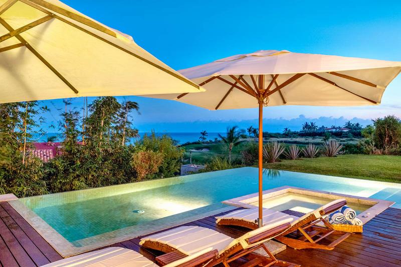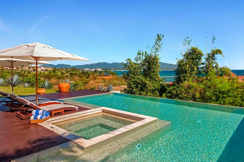 Bay of Banderas lies between two fairways and the Pacific. This leaves Zen Casita 2 at Porta Fortuna with truly spectacular views. Zen Casita 2 is a developer's unit within the luxurious Punta Mita resort. This three bedroom, three and a half bathroom villa can host up to eight guests.