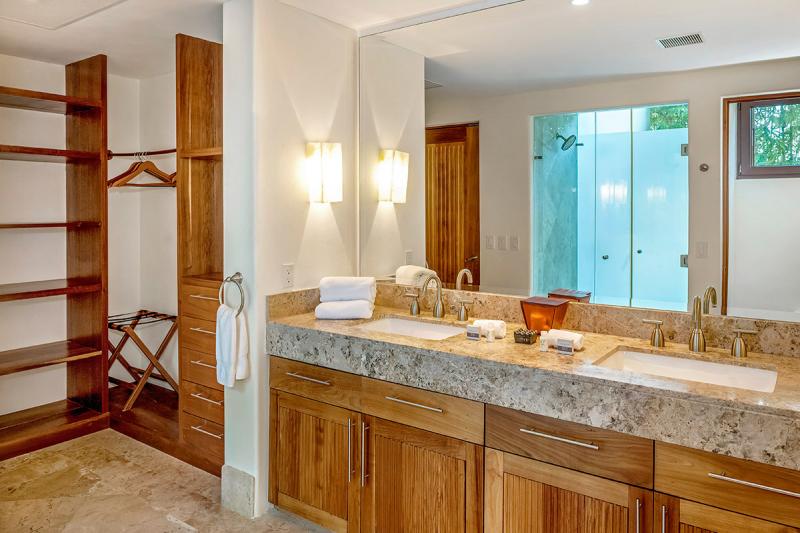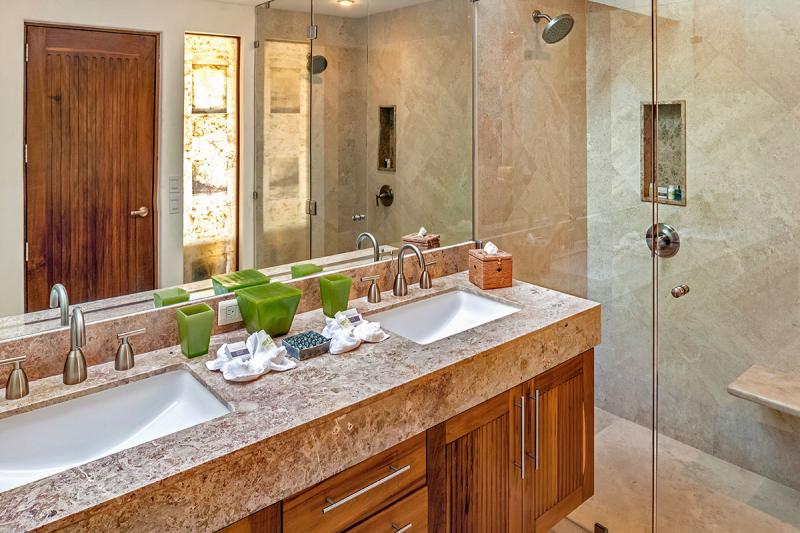 This luxury villa was just recently completed and is home to two professionally decorated master suites. Each suite it's own expansive bath and patio. Both master suites contain king beds while the third bedroom suite contains two double beds with a private bathroom.